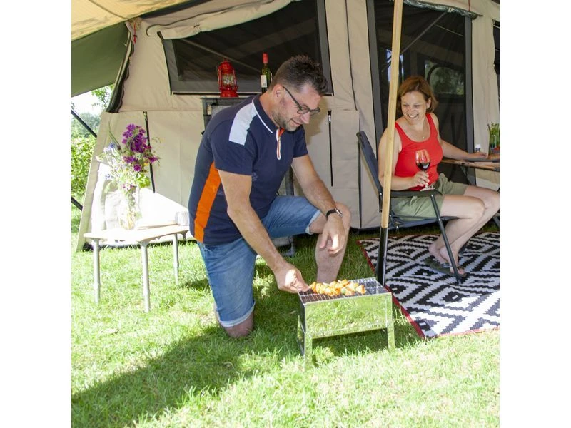 Een compacte, inklapbare RVS barbecue. Deze barbecue is gemaakt van roestvrij staal. Snel en eenvoudig op te zetten door de poten uit te klappen. Zeer geschikt om mee te nemen tijdens het reizen.
