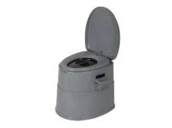 Een modern draagbaar toilet. Dit hogere toilet beschikt over een losse en makkelijk uitneembare emmer zodat deze gemakkelijk te legen is. Voorzien van een soft closure systeem voor het zacht dichtklappen van de deksel. Daarnaast is het draagbare toilet voorzien van een handgreep, een bril, een deksel en een rekje met hendel waar je de wc-rol aan kunt hangen en bijvoorbeeld een luchtverfrisser op kunt zetten. Het toilet bestaat uit twee losse delen die je uit elkaar kunt halen waardoor het compact op te bergen is en compacter mee te nemen.