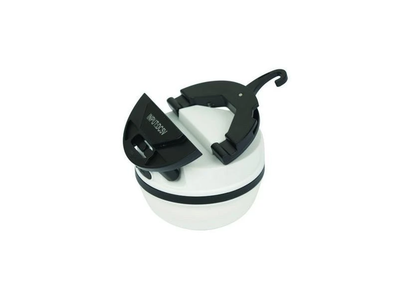 Een ultra compacte en multifunctionele lamp. Deze kan worden gebruikt als hanglamp door middel van de haak of kan op de zijkant worden geplaatst door de houder. Daarnaast kan deze lamp liggend worden gebruikt of met de magneet. Instelbaar in 3 verschillende lichtstanden. De lamp is spatwaterdicht en werkt op een oplaadbare Li-ion accu, welke via het meegeleverde USB oplaadsnoer opgeladen kan worden. Brandtijd: 35-7 uur. Lichtopbrengst: 13-200 lumen.