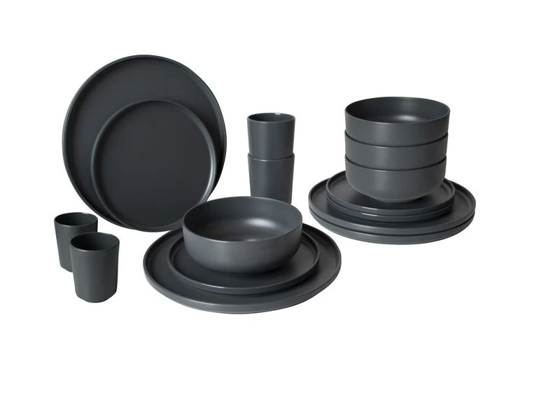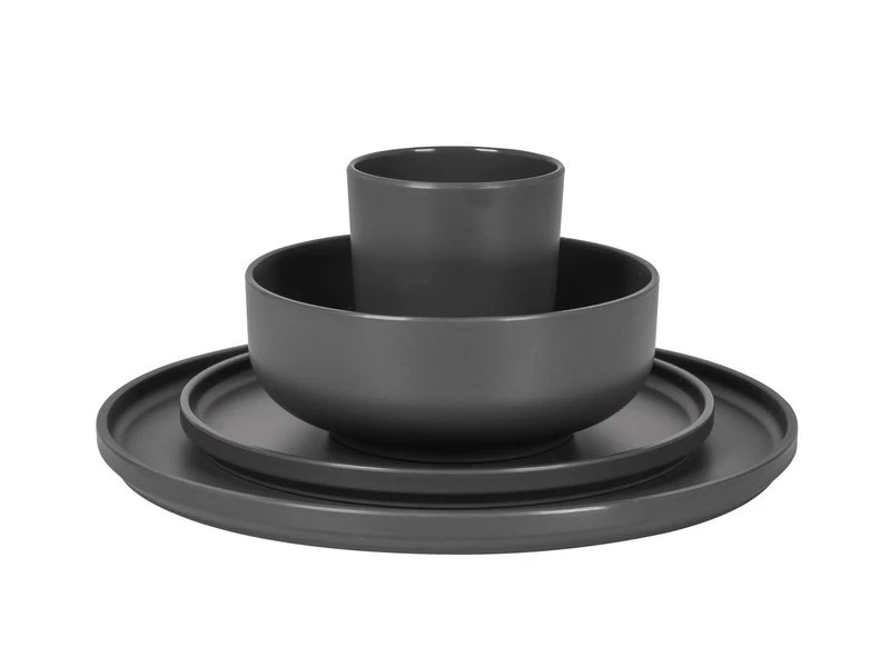 Een hippe serviesset met opstaande rand gemaakt van 100% melamine.