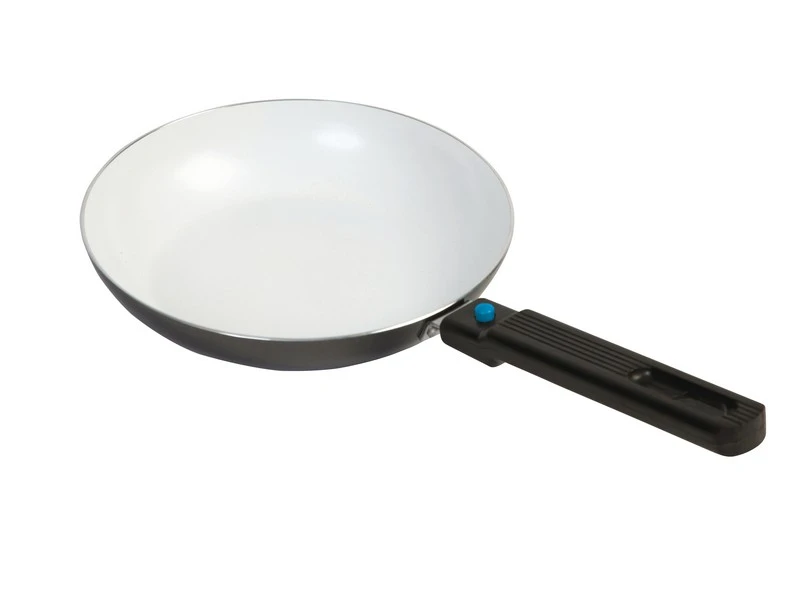 Een compacte koekenpan met keramische coating. Deze pan beschikt over een afneembare handgreep en is hierdoor ruimtebesparend. De keramische coating voorkomt aanbakken, is kraswerend en eenvoudig te reinigen. Daarnaast is het gezonder koken, doordat er minder vet nodig is om te bakken. Geschikt voor de warmtebronnen gas, keramisch en elektrisch. Dikte: 2,2 millimeter.