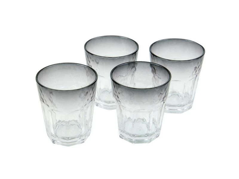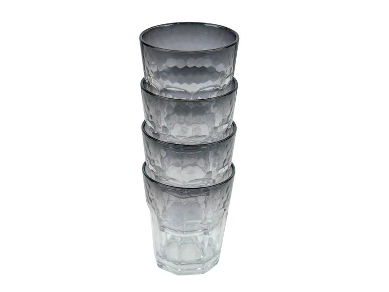 Een stijlvolle set wijn/limonade glazen. De set heeft een smoke effect waardoor deze een luxe uitstraling geeft. Daarbij zijn de glazen gemaakt van sterk kunstof. Hierdoor zijn ze kraswerend en lichtgewicht. Ook zijn ze vaatwasmachinebestendig.