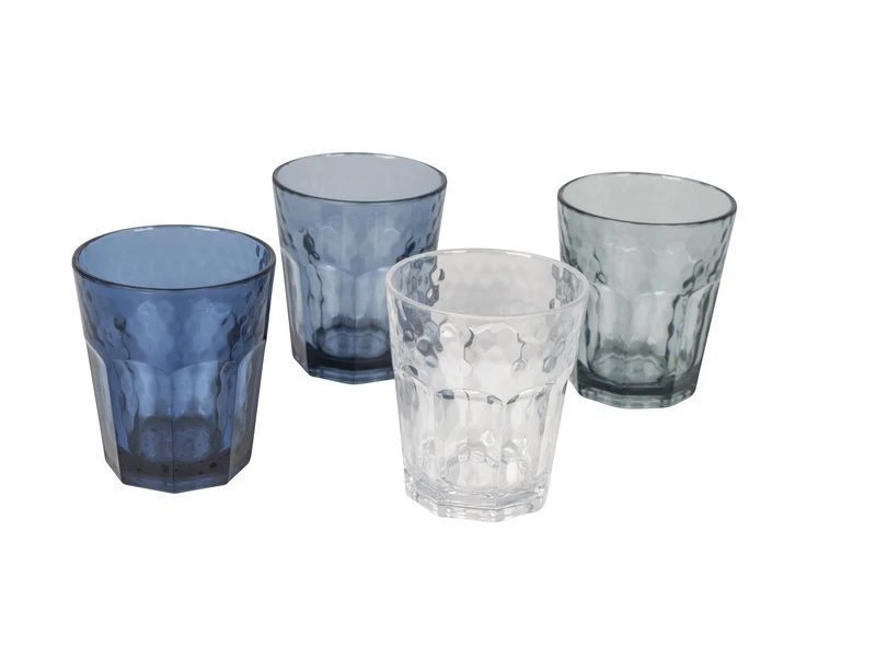 Een set wijn/limonade glazen. De 4 verschillende tinten geven een speels en gezellig effect.Kraswerend, lichtgewicht en vaatwasmachinebestendig. Gemaakt van zeer sterk kunststof.