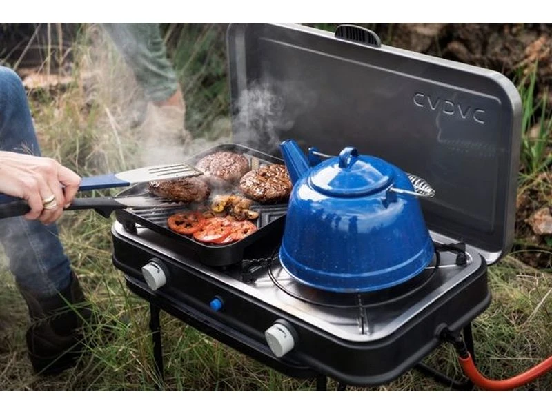 Dit lichtgewicht kooktoestel met 2 branders is de ideale kampeerhulp. De 2 branders werken onafhankelijk van elkaar en kunnen gelijktijdig gebruikt worden. Zo kun je pasta koken terwijl je groentes grilt, of water koken terwijl je een eitje met spek bakt.