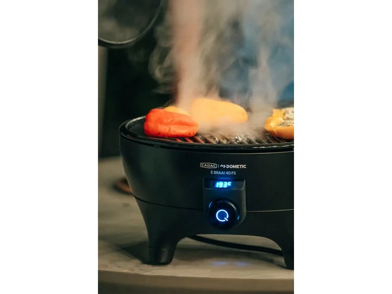 De temperatuur van de E Braai is traploos instelbaar van 70 tot 270 graden, dus ook geschikt voor slow cooking. De deksel bevat 4 ventilatiegaten voor een goede luchtcirculatie en gelijkmatige hittespreiding. De E Braai wordt geleverd inclusief pandrager, BBQ rooster met keramische coating en een deksel. Voor nog meer mogelijkheden kun je de E Braai uitbreiden met optionele accessoires, zoals een BBQ/Plancha of een pizzasteen.