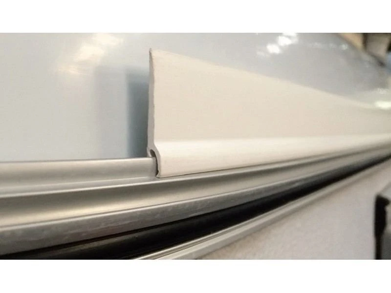 Deze wordt eenvoudig met clips aan de caravan goot bevestigd, en voorkomt dat de regen tussen de rail van de caravan en de tent inloopt.