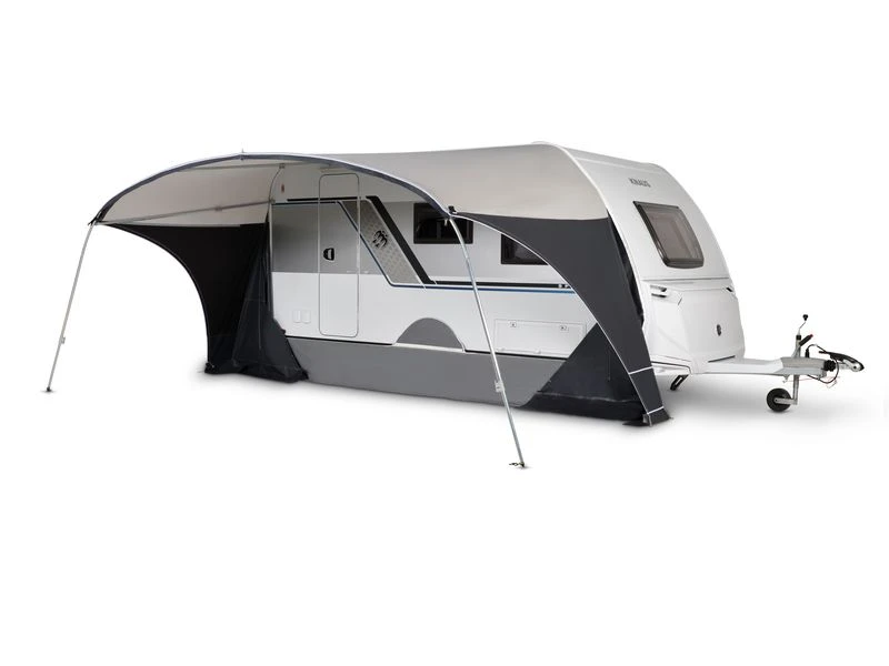 De Dorema Porto is een ronde caravanluifel met een diepte van 240 cm, ontworpen voor optimale beschutting en efficiënte afwatering. Deze moderne boogvormige luifel is de verbeterde versie van de populaire Doréma Mondial en biedt extra comfort tijdens het kamperen. Met royale afmetingen en slimme uitbreidingsmogelijkheden geniet je bij elk weertype van extra leefruimte naast je caravan. Bezoek onze showroom of bestel de Doréma Porto eenvoudig online!