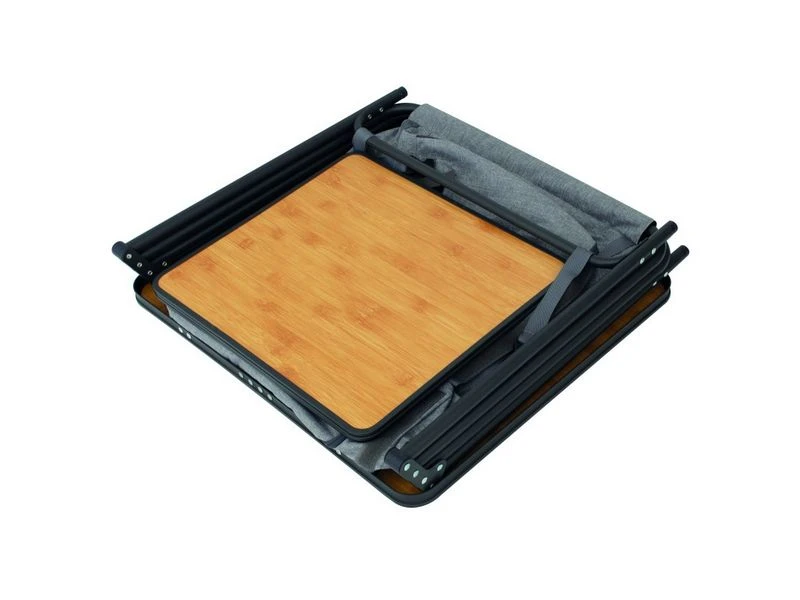 Populaire campingkast, snel op te zetten en met veel opberg plek. 3 etages om al uw keuken of kleding in op te bergen. De Nova Lucera is vervaardigd van het gemêleerd polyester wordt geleverd incl. topblad en stevige etage planken van bamboe materiaal. Verstelbare poten om de kast goed stabiel neer te kunnen zetten. Incl stevige draagtas.