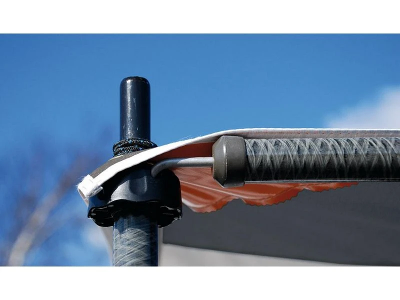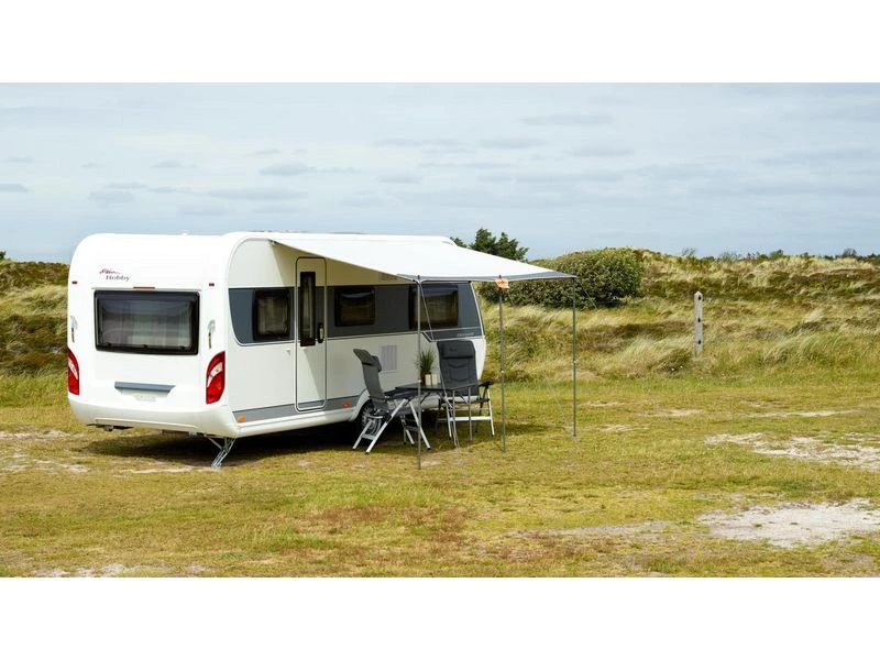 Altijd en overal schaduw met de Shadow luifel. Deze luifel kan direct aan de caravan worden bevestigd en biedt schaduw tegen de zon. Hij kan snel en eenvoudig aan je caravan worden bevestigd door de pees in de caravanrail te schuiven.