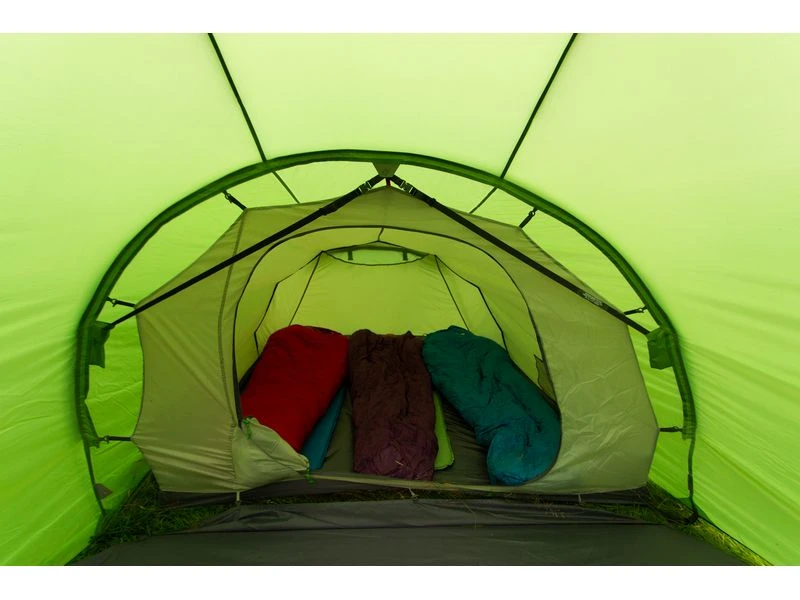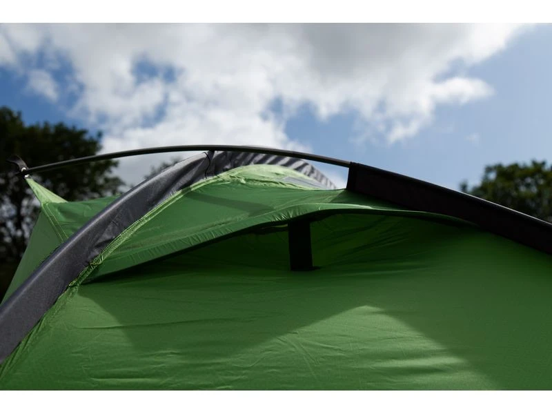 Gepatenteerd Vango TBS® – Tension Band systeem zorgt dat de tent blijft staan bij harde wind. De banden ondersteunen de stokken op 3 plaatsen en voorkomen zijwaartse beweging. Span niet strakker af dan nodig, omdat de stokken anders kromtrekken. Kan bij rustig weer worden opgeborgen.